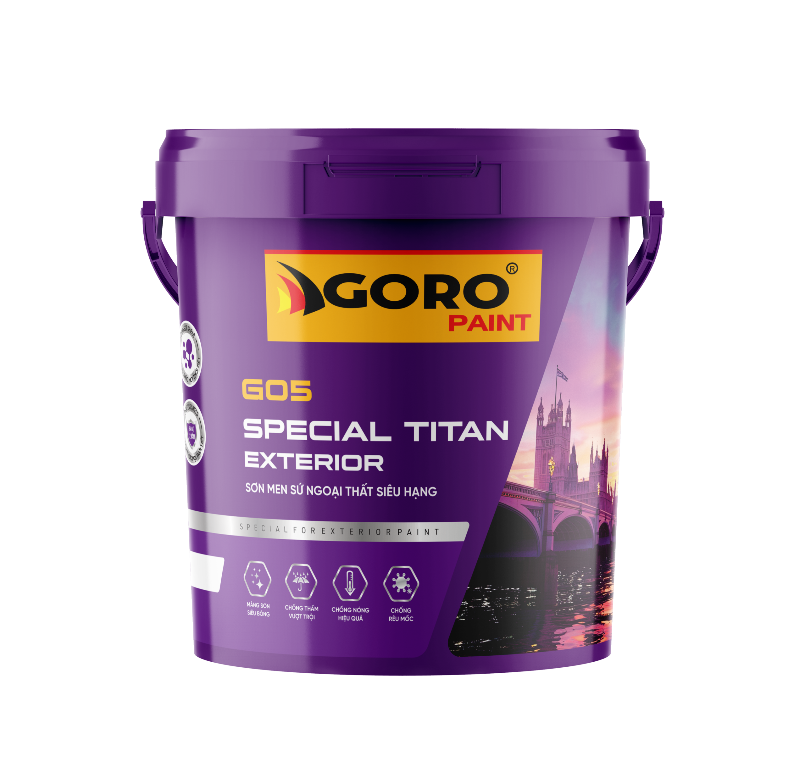 Goro Enamel: là sản phẩm sơn men sứ ngoại thất siêu hạng Công nghệ cao được sản xuất trên dây chuyền thiết bị hiện đại sử dụng Công nghệ nano tiên tiến của Đức sẽ mang đến cho bạn 1.728 màu sơn như ý muốn. Màng sơn được tạo thành bởi các phân tử nano siêu nhỏ giúp cho màng sơn luôn bóng mượt, mềm mại như lụa, mang lại vẻ đẹp hoàn mỹ cho ngôi nhà của bạn.